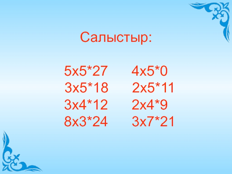 Слайд 22Салыстыр: 5х5*27 4х5*0 3х5*18