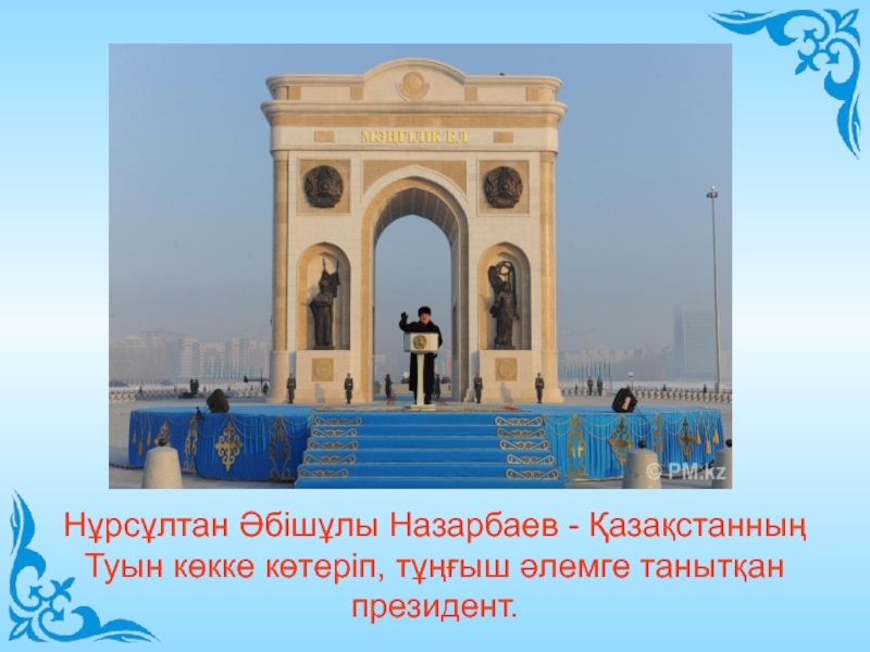 Слайд 4Нұрсұлтан Әбішұлы Назарбаев - Қазақстанның Туын көкке көтеріп, тұңғыш әлемге танытқан