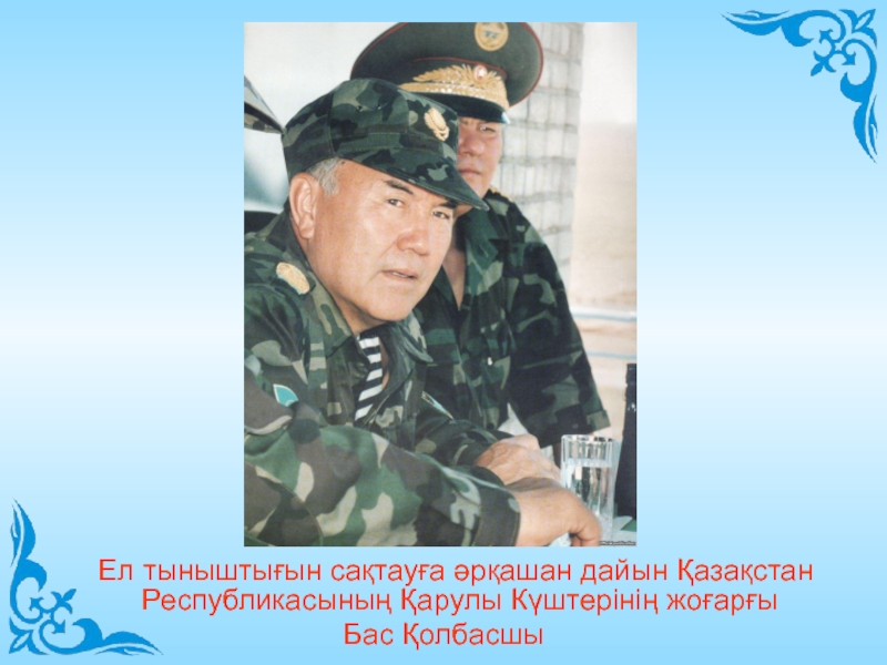 Слайд 18 Ел тыныштығын сақтауға әрқашан дайын Қазақстан Республикасының Қарулы Күштерінің