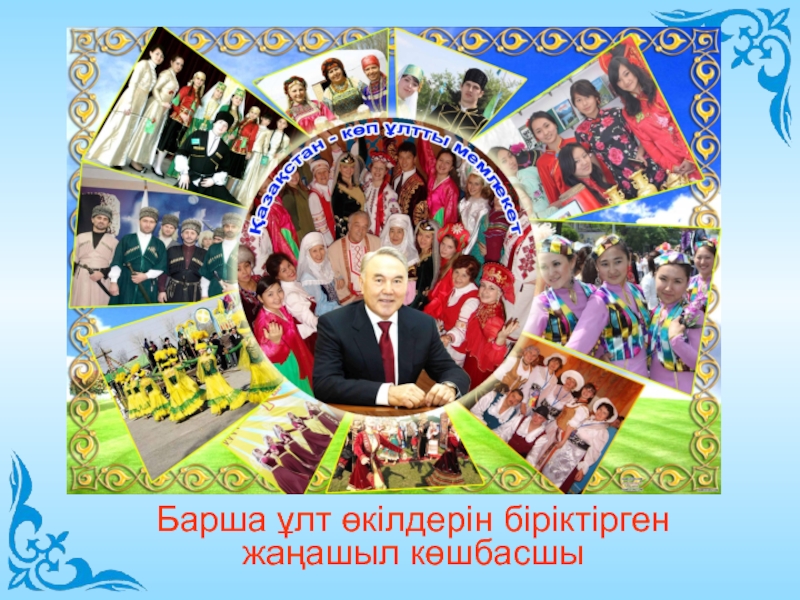 Слайд 16Барша ұлт өкілдерін біріктірген жаңашыл көшбасшы