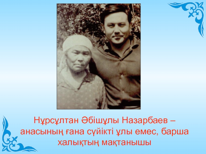 Слайд 6Нұрсұлтан Әбішұлы Назарбаев – анасының ғана сүйікті ұлы емес, барша халықтың