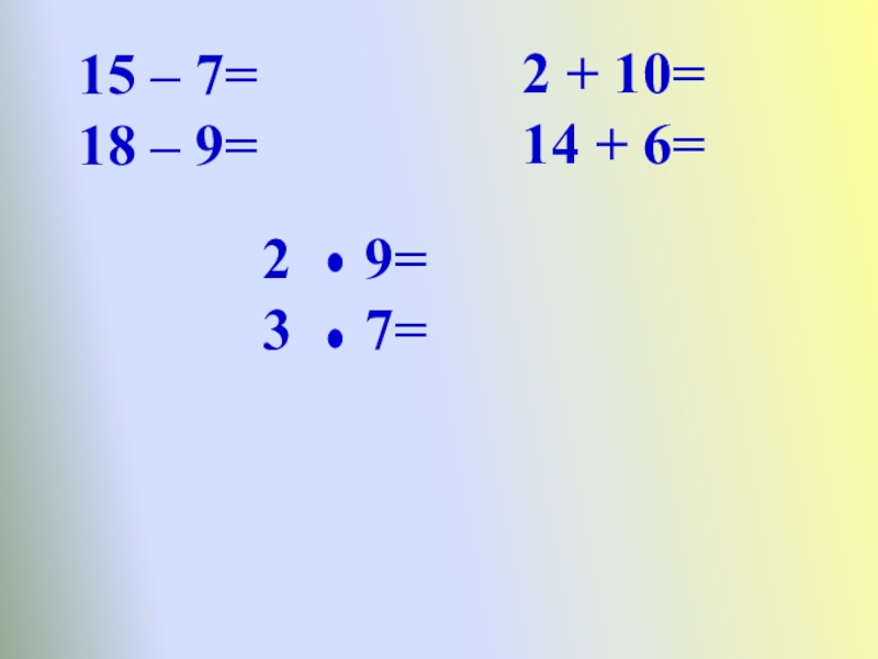 2   9= 3   7= 15 – 7= 18 – 9= 2 +
