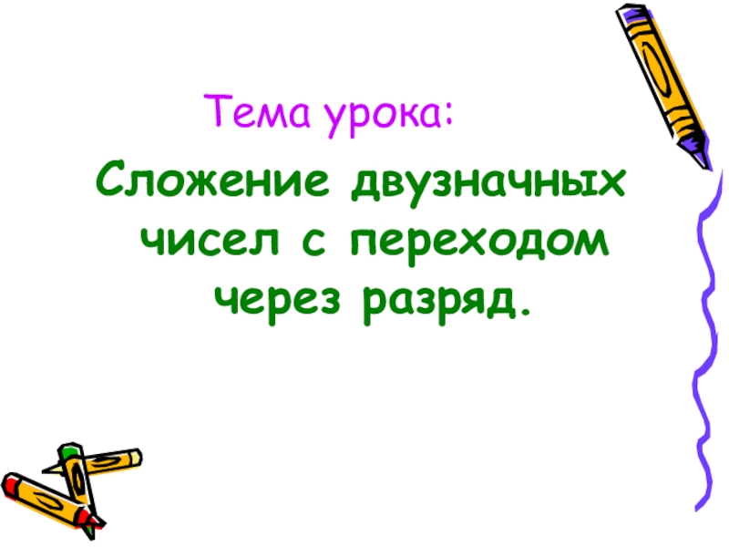 Тема урока:Сложение двузначных чисел с переходом через разряд.