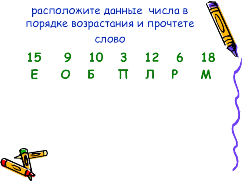 Слайд 4расположите данные  числа в порядке возрастания и прочтете слово