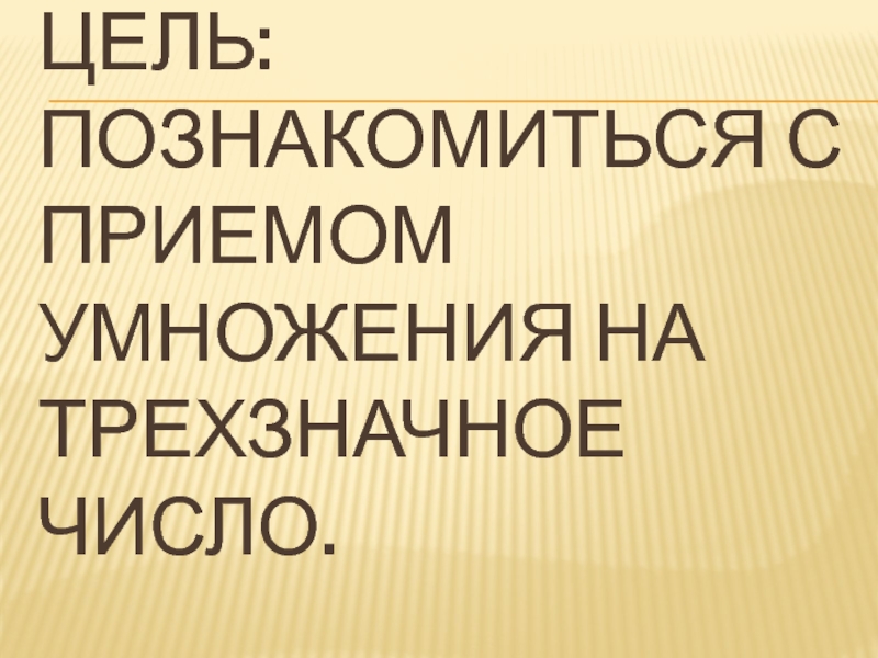 Слайд 3Цель: Познакомиться с приемом умножения на трехзначное число.
