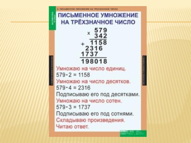 Презентация, доклад урока математики Умножение на трехзначное число