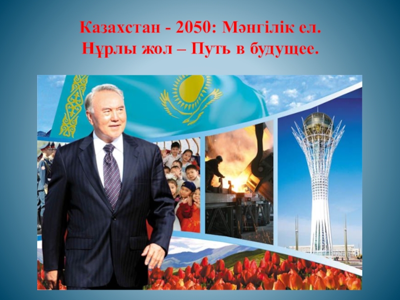 Слайд 3Казахстан - 2050: Мәнгілік ел. Нұрлы жол – Путь в будущее.