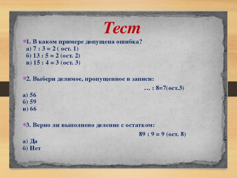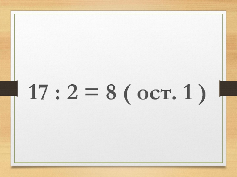 Слайд 717 : 2 = 8 ( ост. 1 )