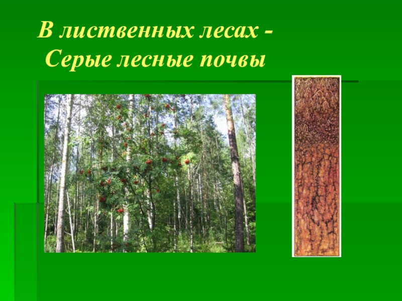 Слайд 7В лиственных лесах - Серые лесные почвы