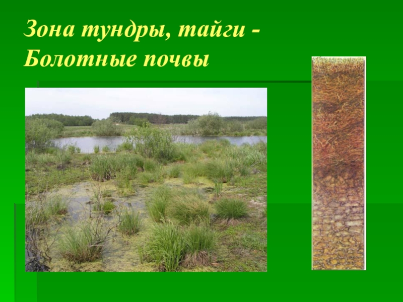 Слайд 8Зона тундры, тайги - Болотные почвы