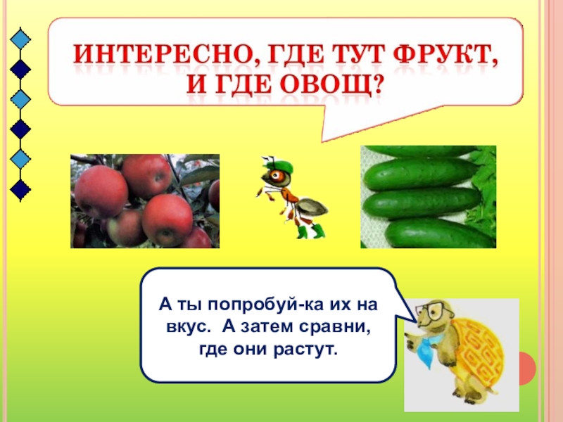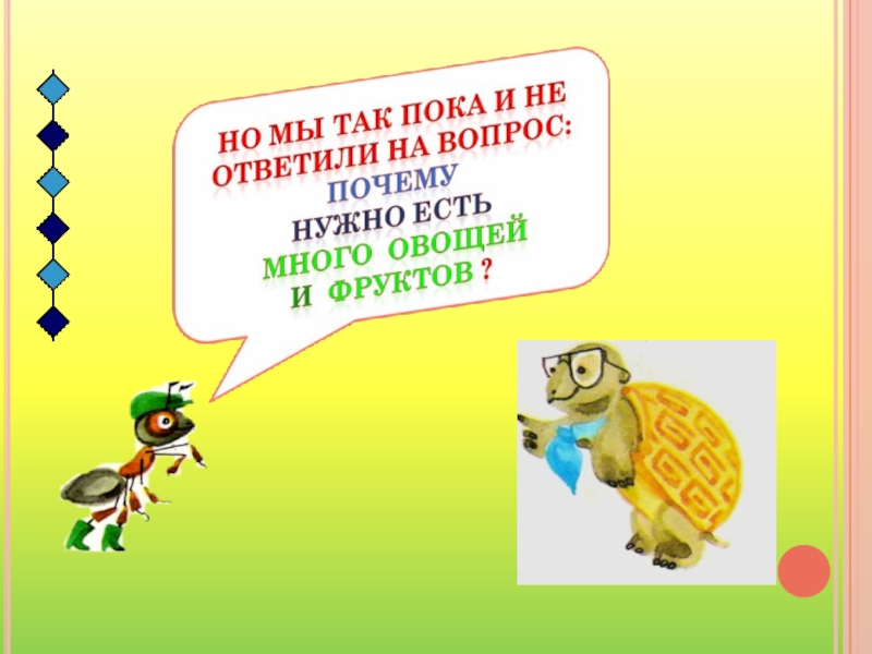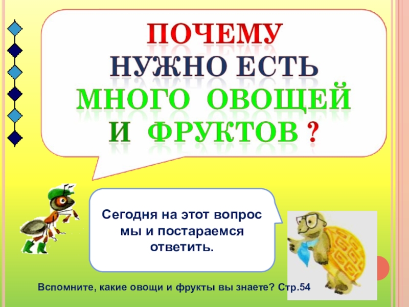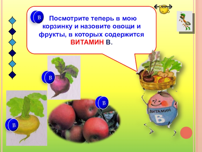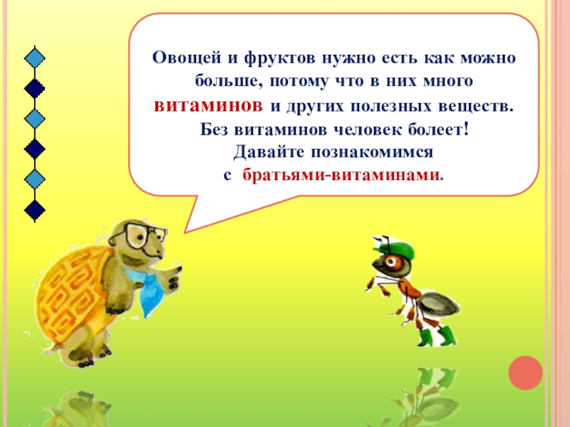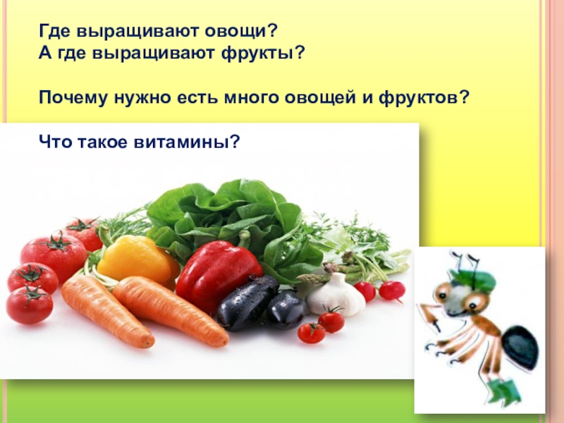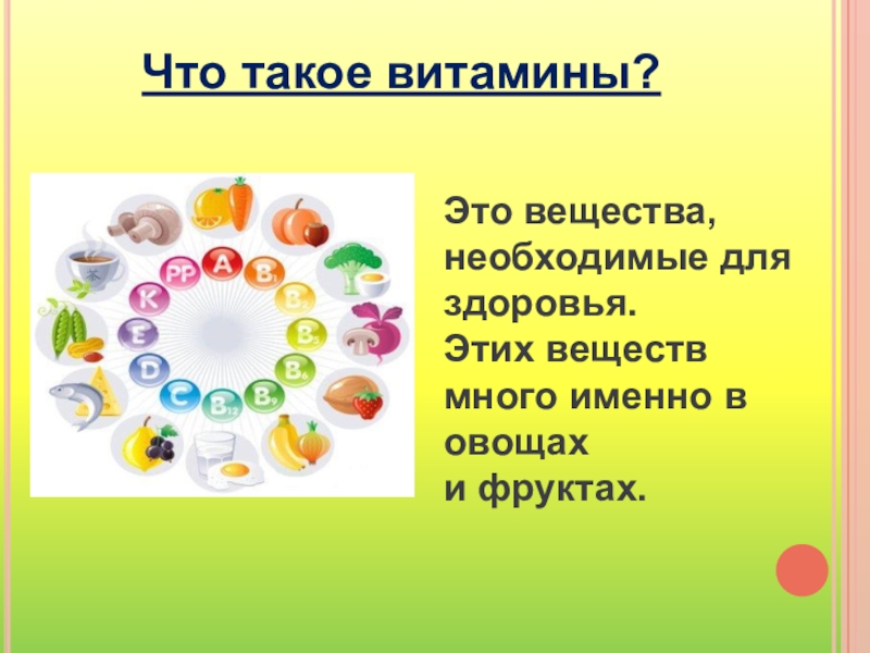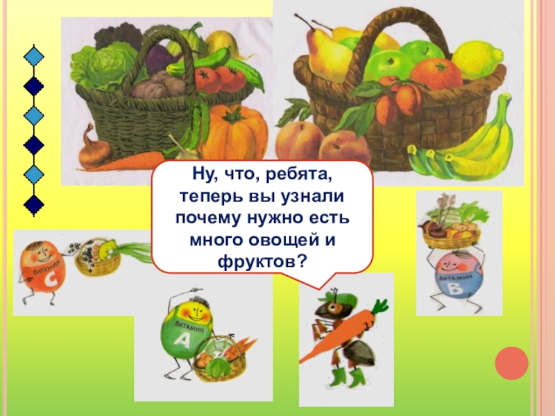 Надо есть все овощи и фрукты, потому что в них разные витамины.
