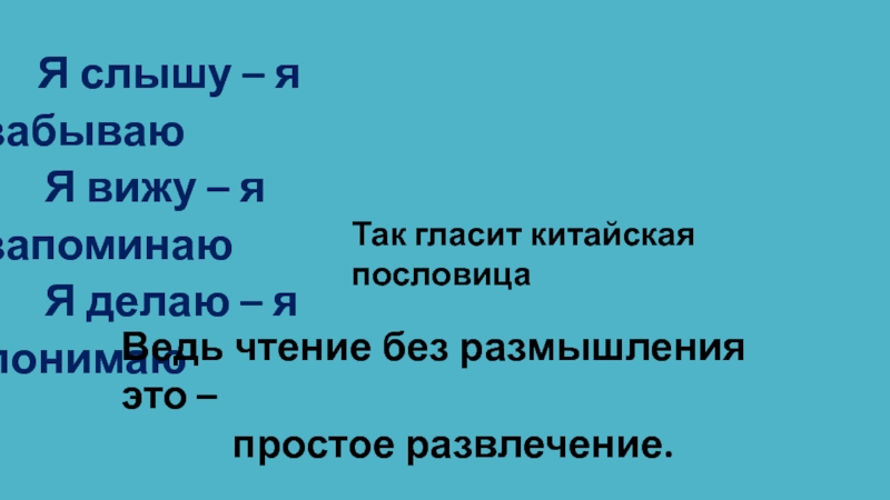 Ведь чтение без размышления это –