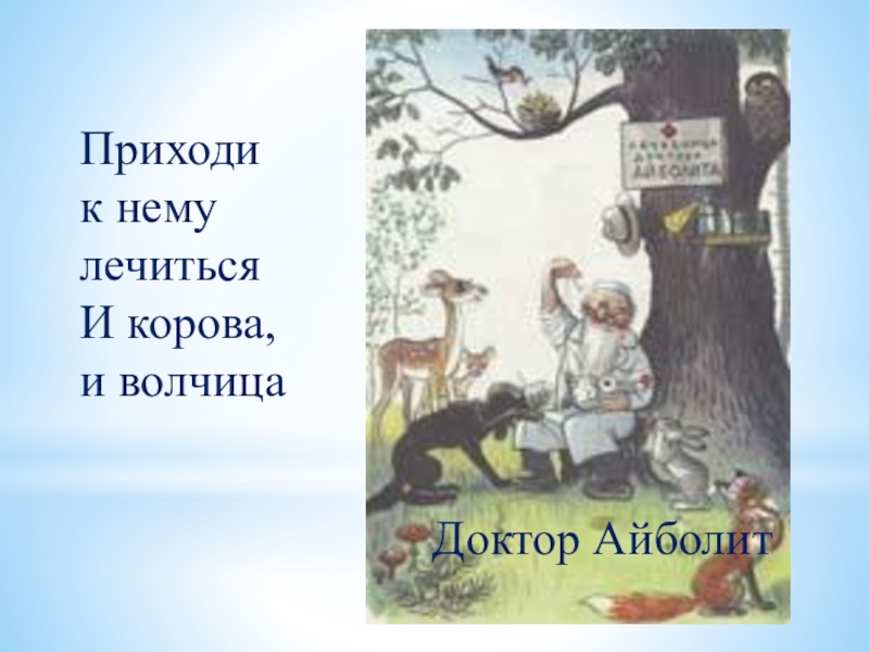 Доктор АйболитПриходи к нему лечиться И корова,и волчица