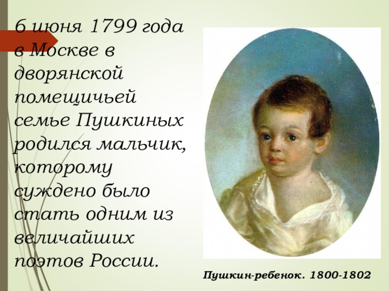Пушкин-ребенок. 1800-1802