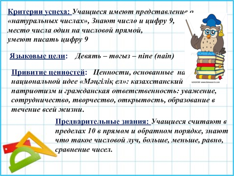 1.1.1.1** понимать образование натуральных чисел числа нуль;