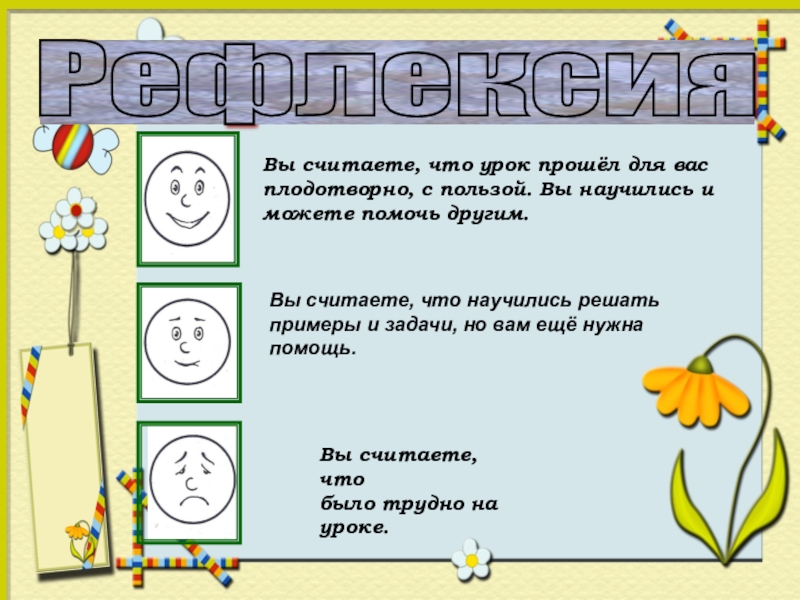 Вы считаете, что урок прошёл для вас плодотворно, с пользой. Вы научились и можете помочь другим.