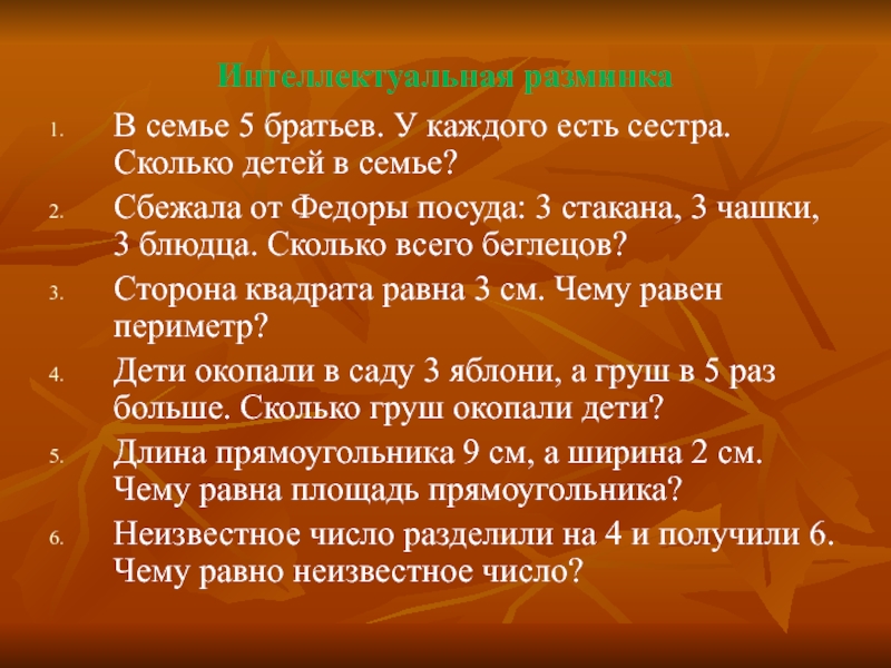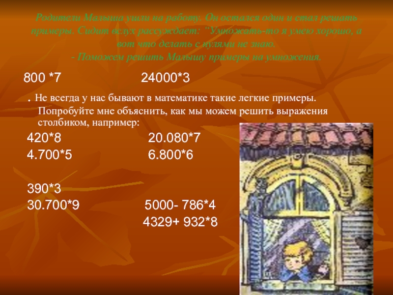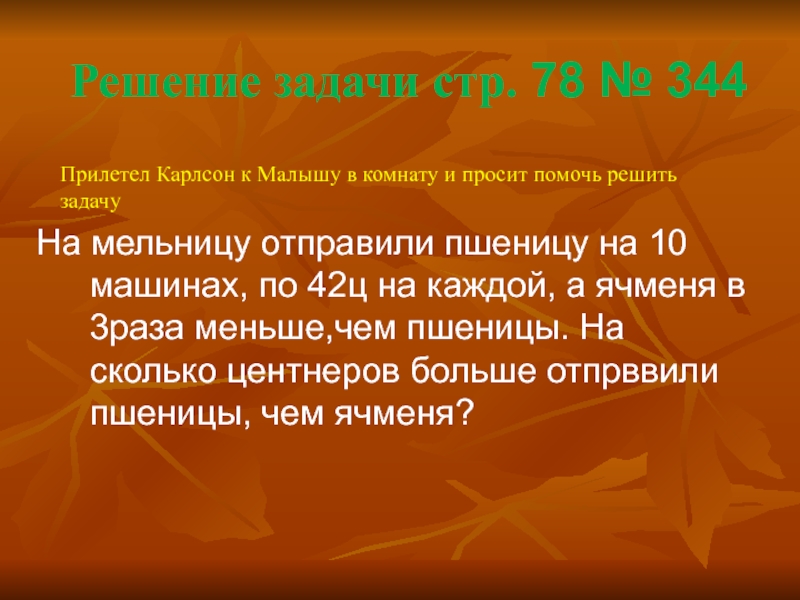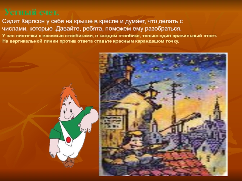Прилетел Карлсон к Малышу в комнату и просит помочь решить задачу