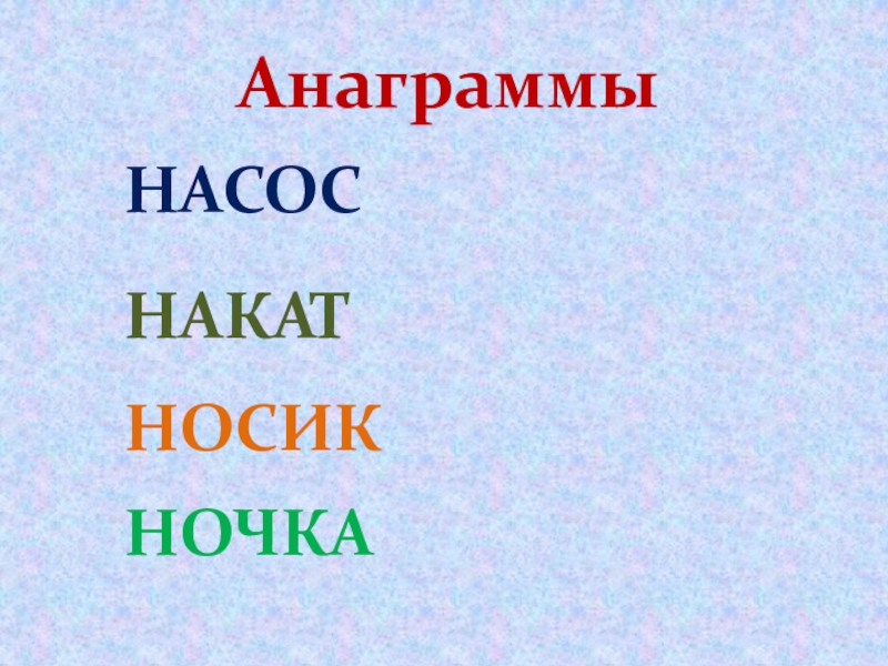 АнаграммыНАСОСНАКАТНОСИКНОЧКА