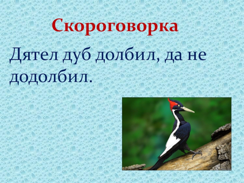 Слайд 2Дятел дуб долбил, да не додолбил.