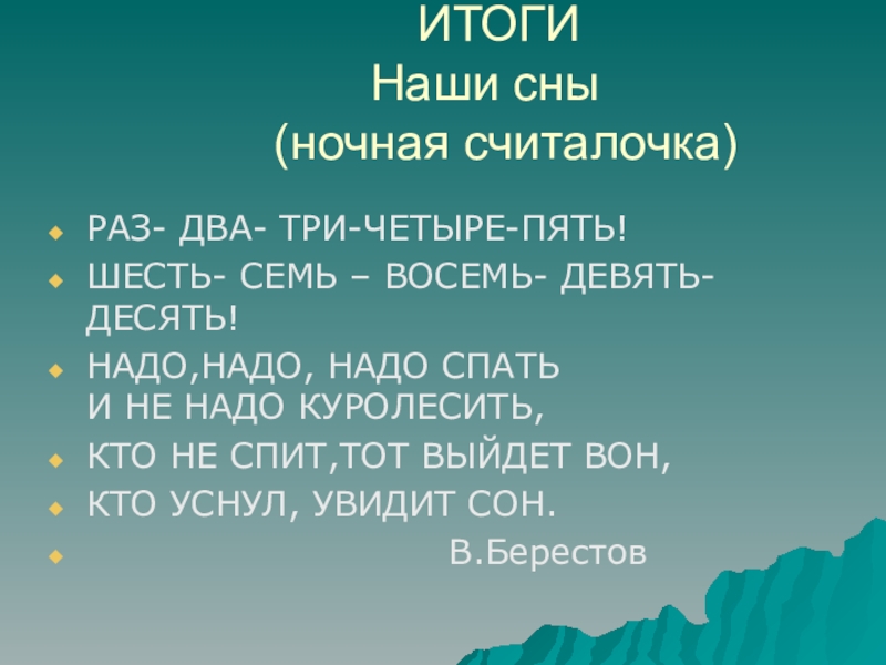 ШЕСТЬ- СЕМЬ – ВОСЕМЬ- ДЕВЯТЬ- ДЕСЯТЬ!
