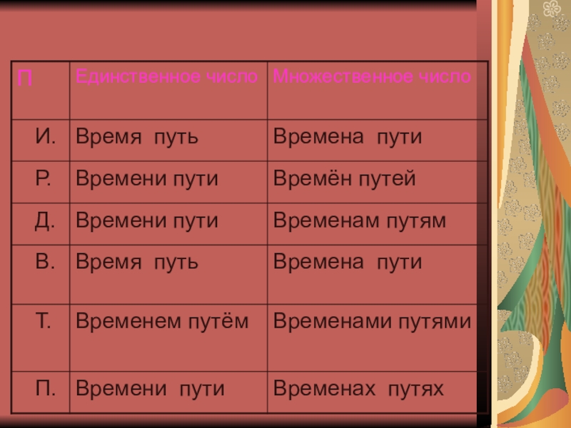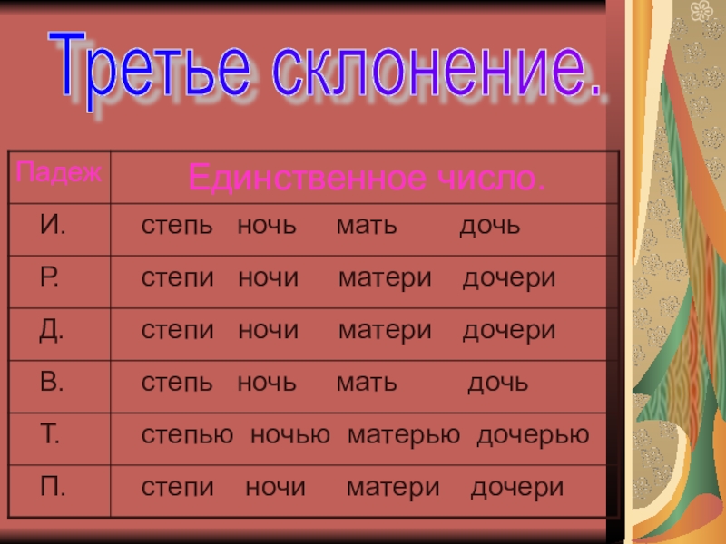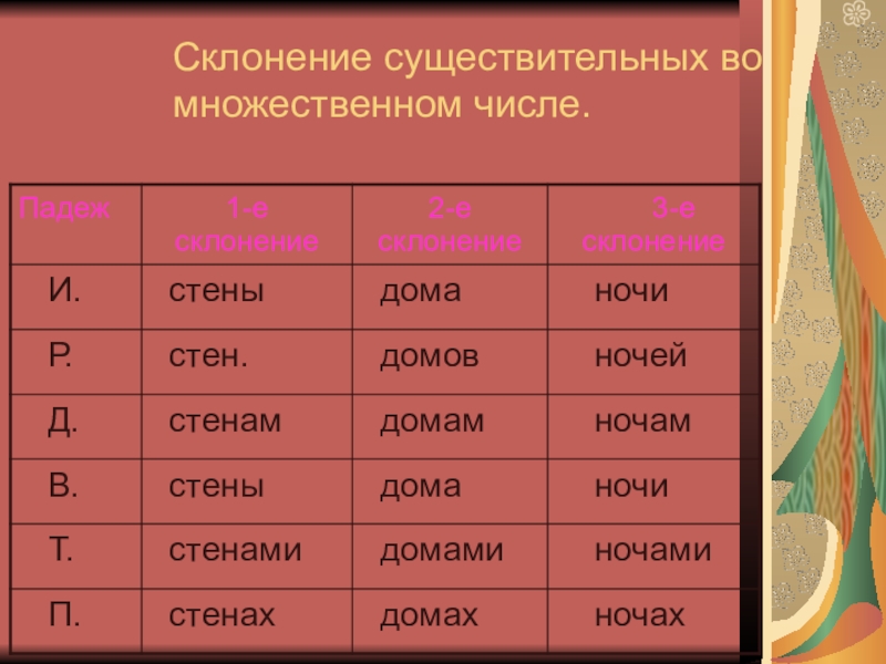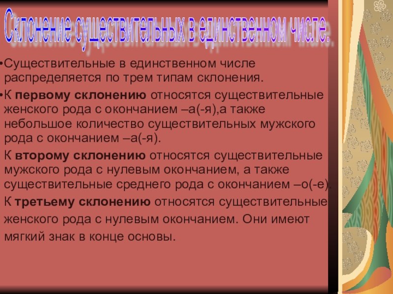 Склонение существительных в единственном числе.
