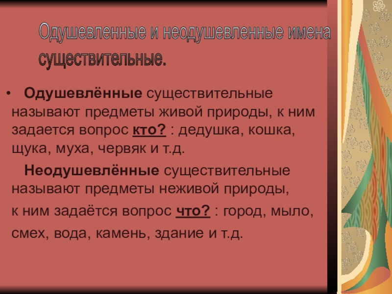 Одушевленные и неодушевленные имена