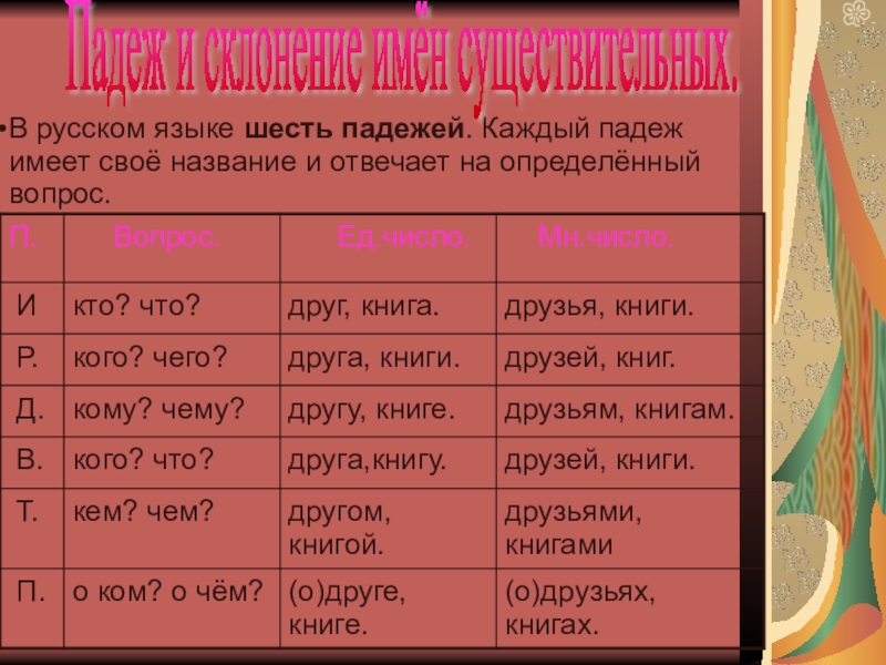 Падеж и склонение имён существительных.