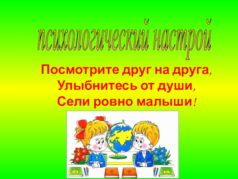 Посмотрите друг на друга,Улыбнитесь от души, Сели ровно малыши! психологический настрой
