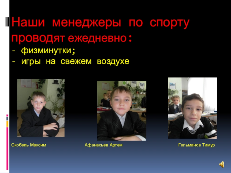 Спортсмены ( Скобель Максим, Афанасьев Артем, Гельманов Тимур)