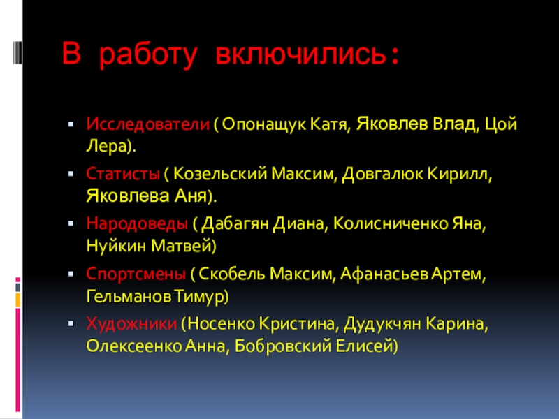 Козельский Максим, Довгалюк Кирилл, Яковлева Аня).