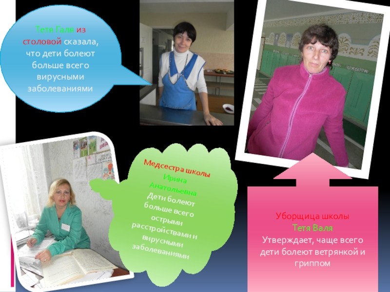 Слайд 7Тетя Галя из столовой сказала, что дети болеют больше всего вирусными