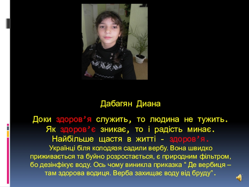 Українці біля колодязя садили вербу. Вона швидко приживається та буйно розростається, є природним фільтром, бо дезінфікує воду. Ось чому виникла приказка “ Де вербиця – там здорова водиця. Верба захищає воду від бруду”.