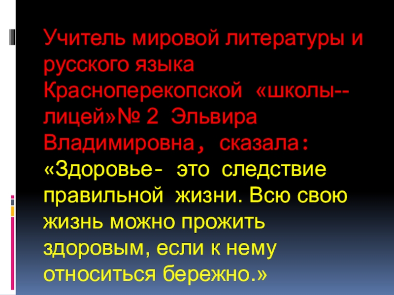 Слайд 8Учитель мировой литературы и русского языка Красноперекопской «школы--лицей»№ 2 Эльвира Владимировна,