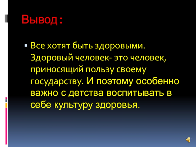 Все хотят быть здоровыми. Здоровый человек- это человек, приносящий пользу своему