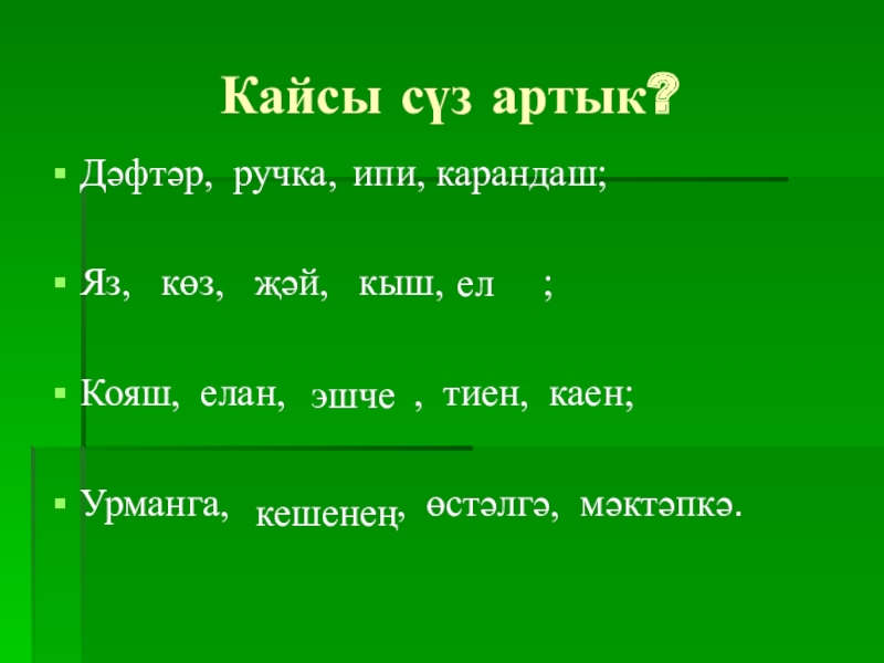 (кем? нәрсә?)