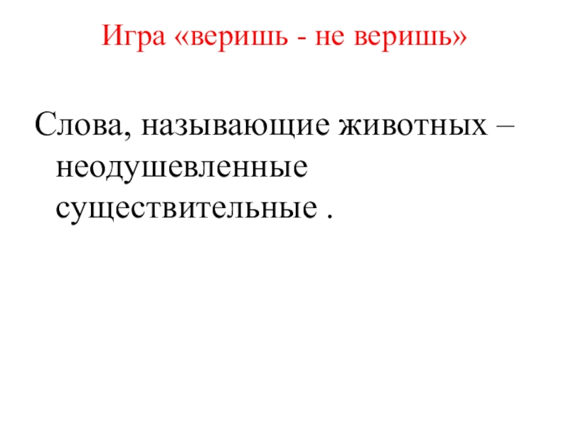 Игра «веришь - не веришь»  Слова, называющие животных – неодушевленные существительные .