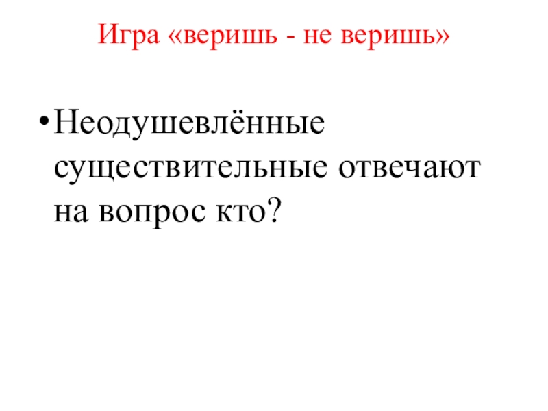 Игра «веришь - не веришь»  Неодушевлённые существительные отвечают на вопрос кто?