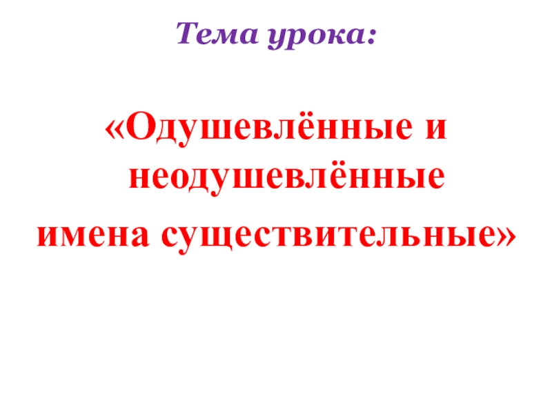 Тема урока: «Одушевлённые и неодушевлённые имена существительные»