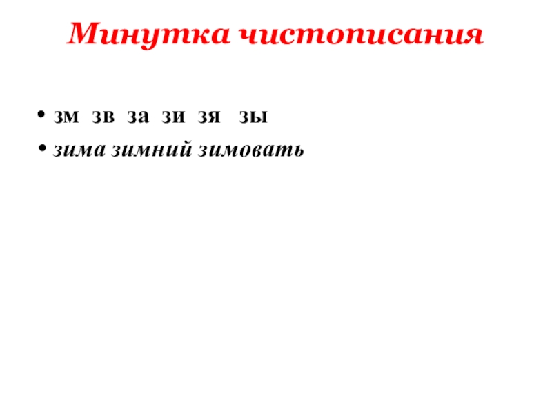 Минутка чистописания зм зв за зи зя  зызима зимний зимовать
