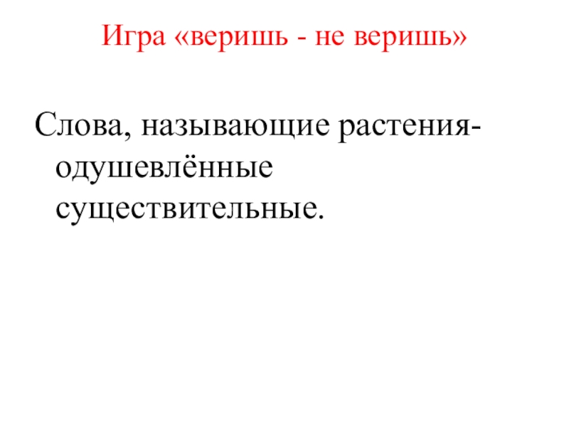 Игра «веришь - не веришь»  Слова, называющие растения- одушевлённые существительные.