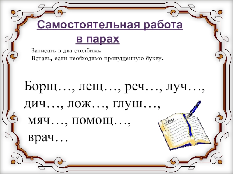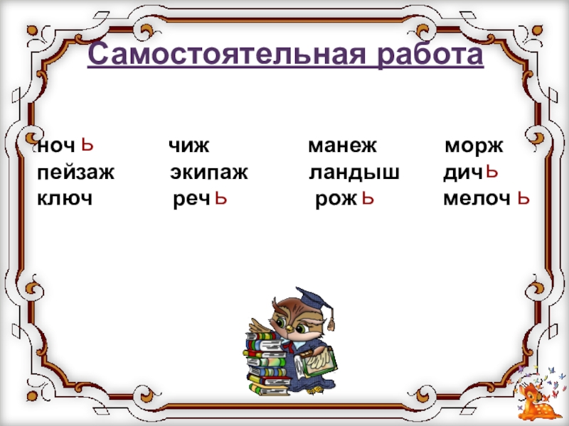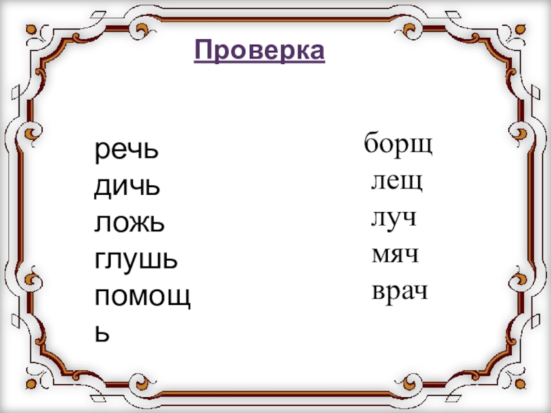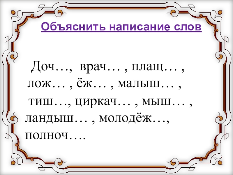 тиш…, циркач… , мыш… , ландыш… , молодёж…, полноч….
