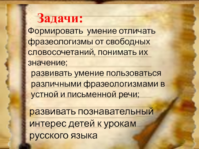 развивать умение пользоваться различными фразеологизмами в устной и письменной речи;