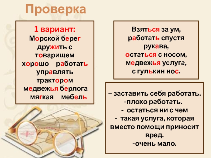 Взяться за ум, работать спустя рукава, остаться с носом, медвежья услуга,