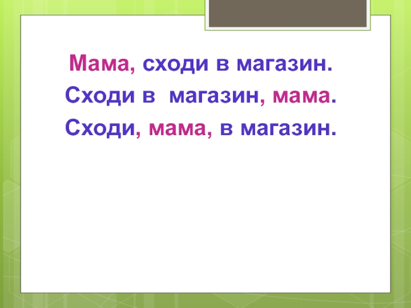 Мама, сходи в магазин.Сходи в магазин, мама.Сходи, мама, в магазин.