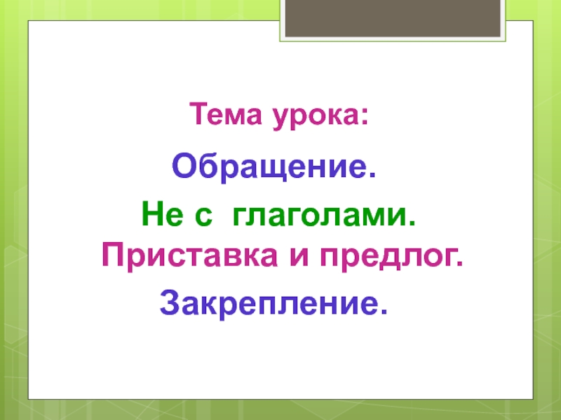 Тема урока:Обращение. Не с глаголами. Приставка и предлог.Закрепление.