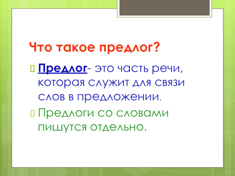 Слайд 19Что такое предлог?
