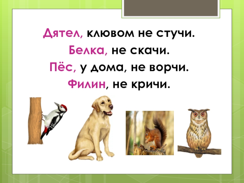 Слайд 28Дятел, клювом не стучи.
