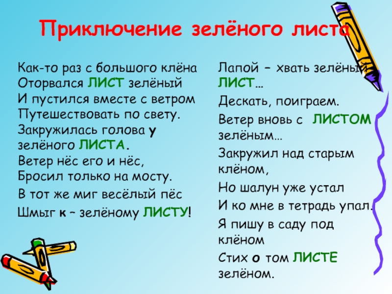 Стих о том ЛИСТЕ зелёном.