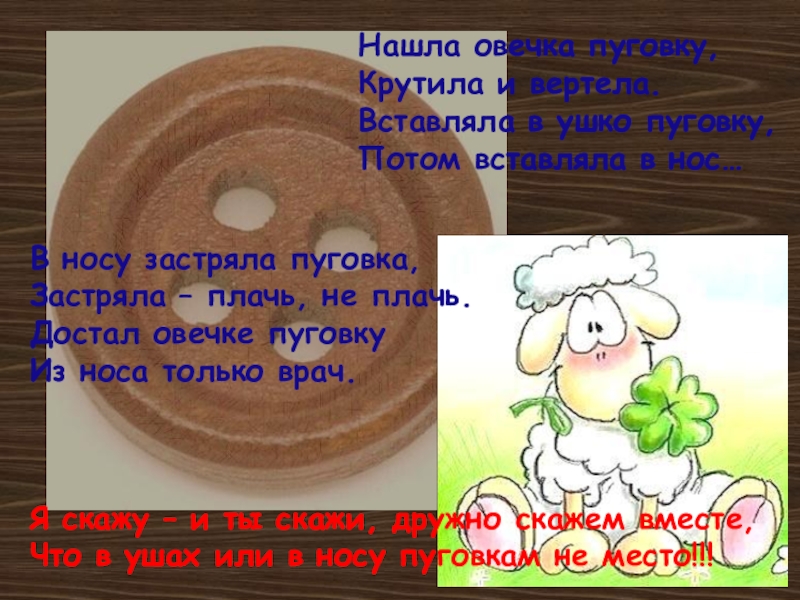 Что в ушах или в носу пуговкам не место!!!