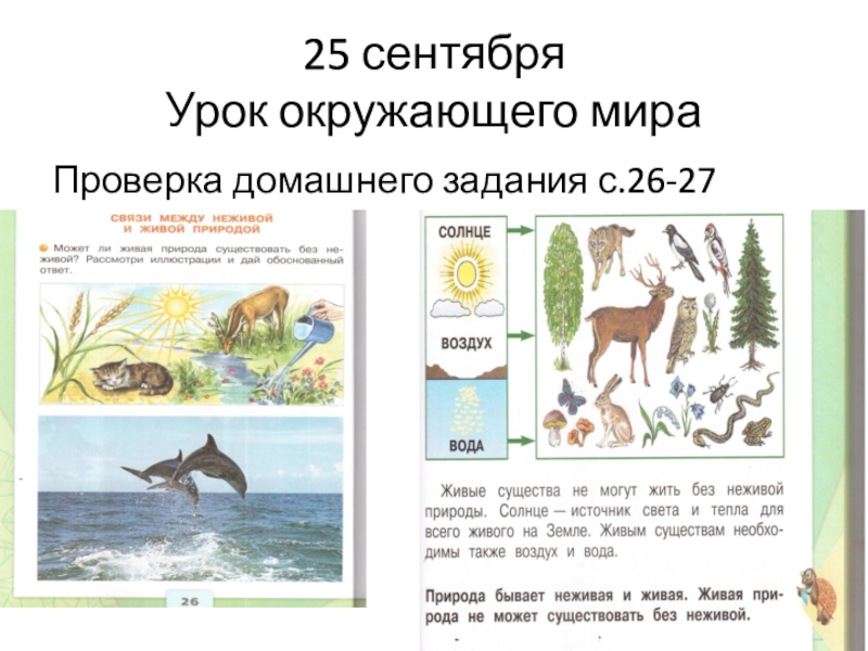 25 сентября  Урок окружающего мираПроверка домашнего задания с.26-27